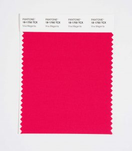 Pantone, a consultoria de tendências de moda, anunciou ‘Pantone 18-1750’ Viva Magenta como a cor do ano de 2023. Trata-se de uma cor híbrida, um tom vermelho “cochonilha” que apresenta um equilíbrio entre o quente e o frio, e entre o físico e o virtual. Viva Magenta é um vermelho carmim, assertivo, mas não agressivo definido por Pantone como tendo uma abordagem de “mão de ferro em luva de seda”. Promove otimismo e alegria e é um vermelho vivo que encoraja a experimentação desenfreada e a auto expressão. “Ousado, espirituoso e inclusivo, Viva Magenta dá as boas-vindas a todos com o mesmo espírito rebelde”, disse Pantone em um comunicado.