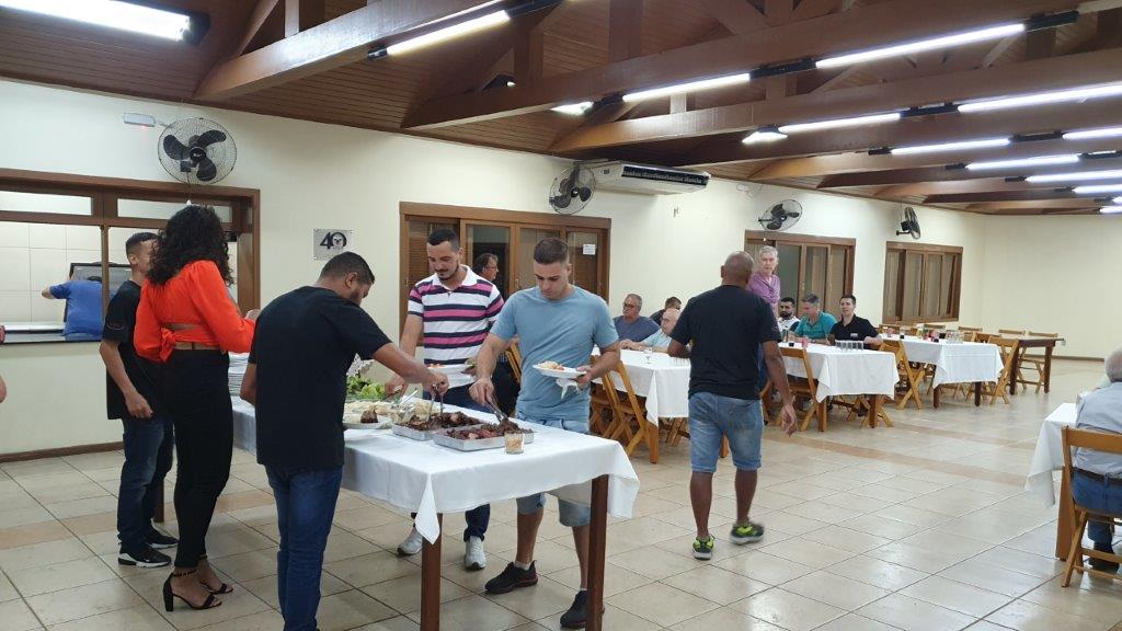 Ao final da palestra, o cumprimento do Presidente e o deslocamento até a sede ABQTIC, onde um churrasco oferecido pela empresa PULCRA foi servido aos presentes.
